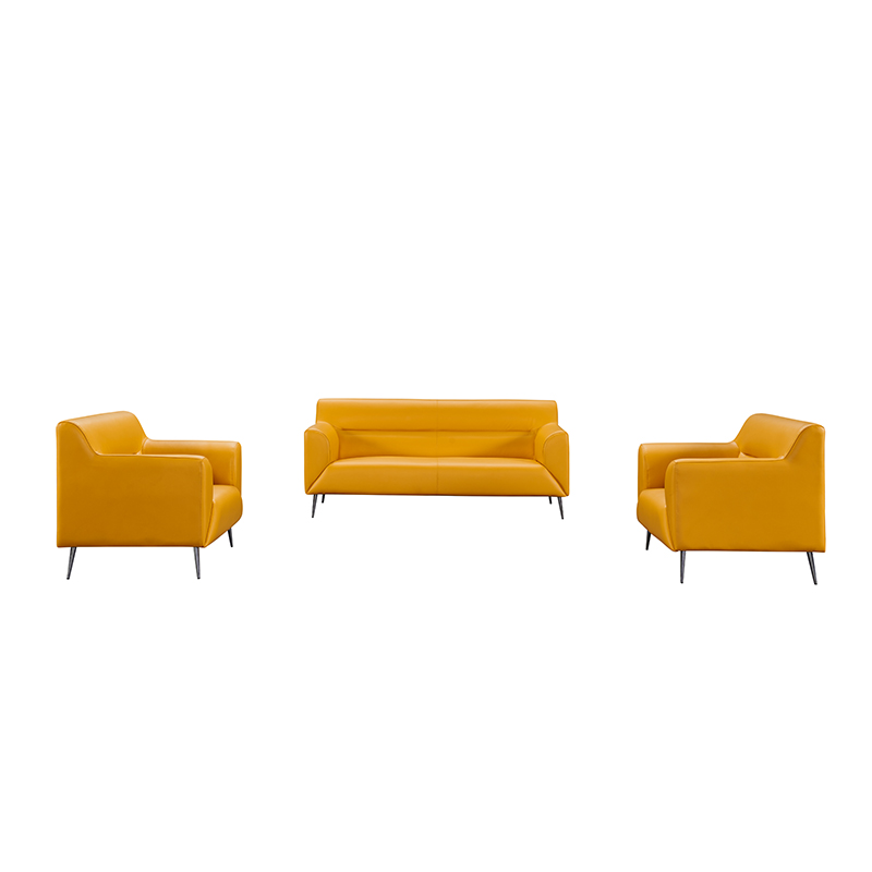 Modern design style: Modern Office Couch has a simple and elegant overall shape, composed of straight lines and simple curves, without extra decoration, which conforms to the pursuit of efficient and simple atmosphere in modern office space. The color matching mostly uses fashionable and classic tones, such as the yellow in the picture, which can add vitality and fashion to the office environment. It can also be customized according to customer needs to meet the brand visual needs of different companies.